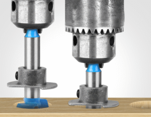 The hexagonal handle of the HB5000 is slightly larger, with a 3/8-inch hex shank, designed to fit more powerful drills and impact drivers, ensuring better torque transfer for tough cuts. The shank is coated with a black oxide finish, providing corrosion resistance and reducing friction during tool changes. The positioning tip is reinforced with carbide as well, ensuring it stays sharp even when drilling into hard, knotty wood, where standard steel tips might dull quickly.