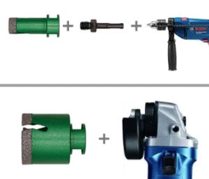 • Norton Clipper 50mm Diamond Saw Blade Drill Bit: A hybrid bit that combines drilling and cutting functions for large stone slabs. It has a circular blade with 30/40 mesh diamonds in a metal bond, designed to cut through granite and limestone while drilling a central hole for alignment. The bit has a 20mm shank and a 200mm length, used with heavy-duty stone drills. Its segmented design enhances cooling, and the diamond segments are laser-welded for durability, allowing it to cut through 100mm thick granite slabs with minimal vibration.